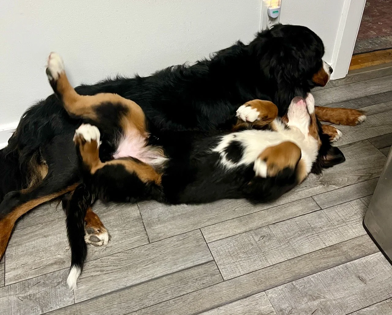 “Tommy is such a wonderful puppy. He is outgoing and playful but also calm and thoughtful. He is very driven to learn and loves to ‘work.’ The other dogs haven’t had a single issue with him or each other since he came home and he and Lupine have a morning play routine which is hysterical because it doesn’t involve any physical contact.