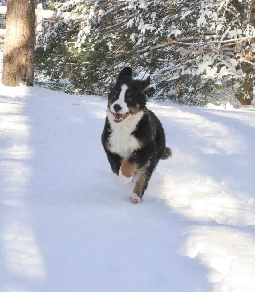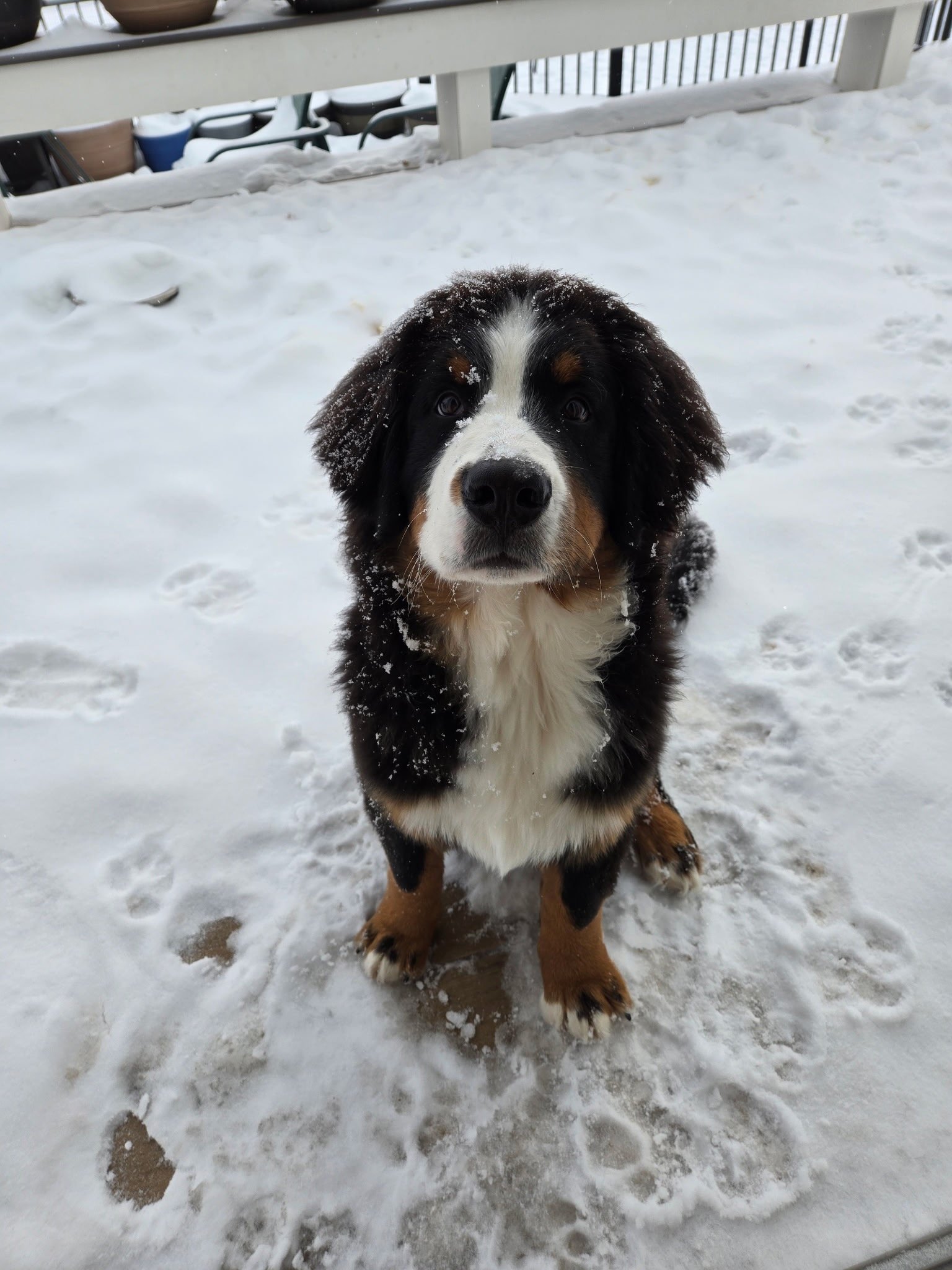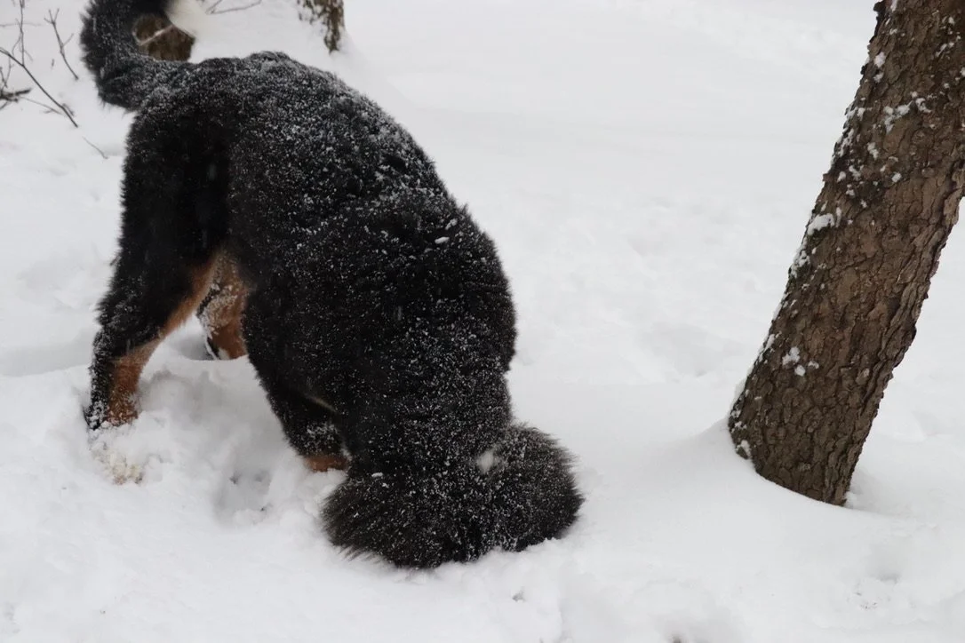 Jasper received 6+ inches of snow for a half birthday present and has reveled in burrowing, bouncing and zooming around the yard. He even pauses occasionally to survey his newly frosted domain.