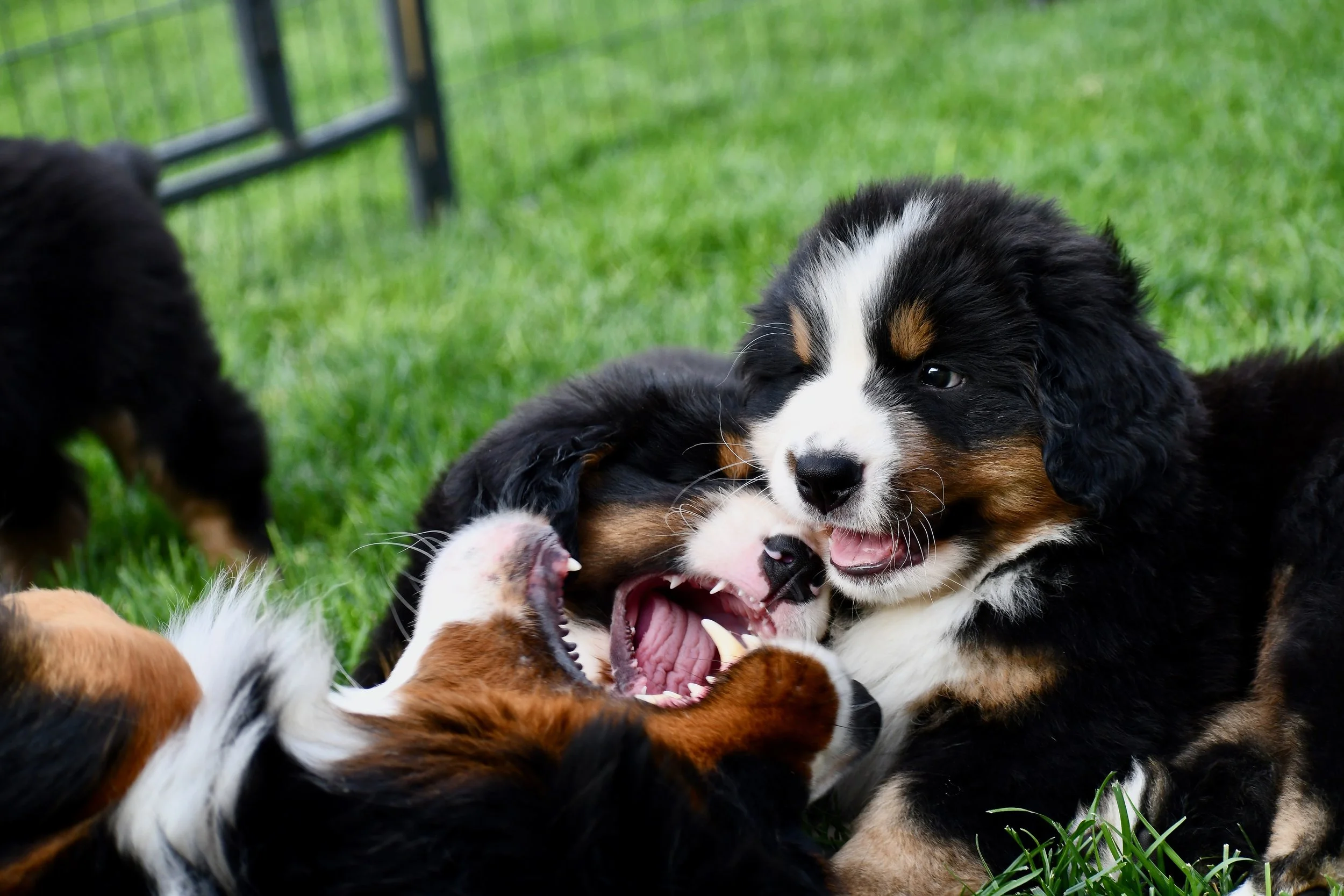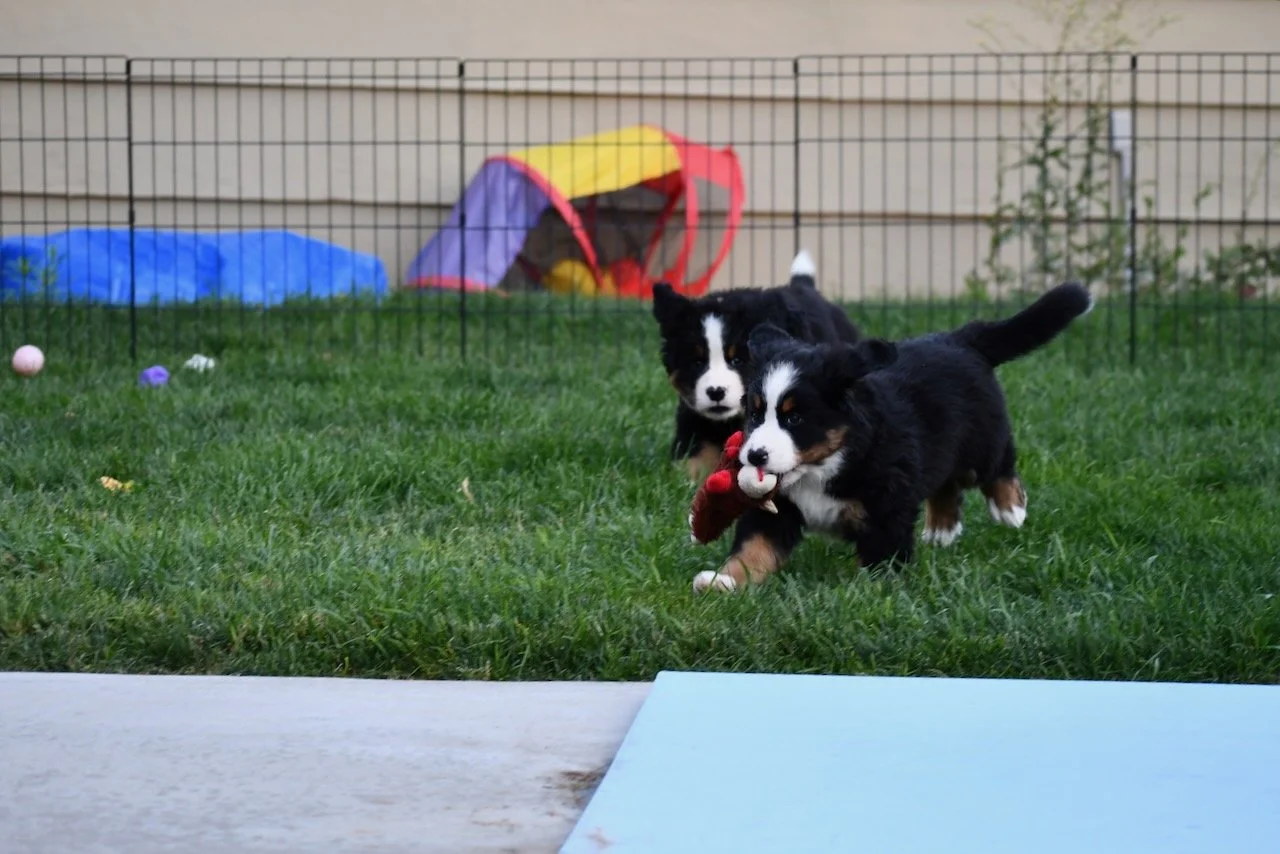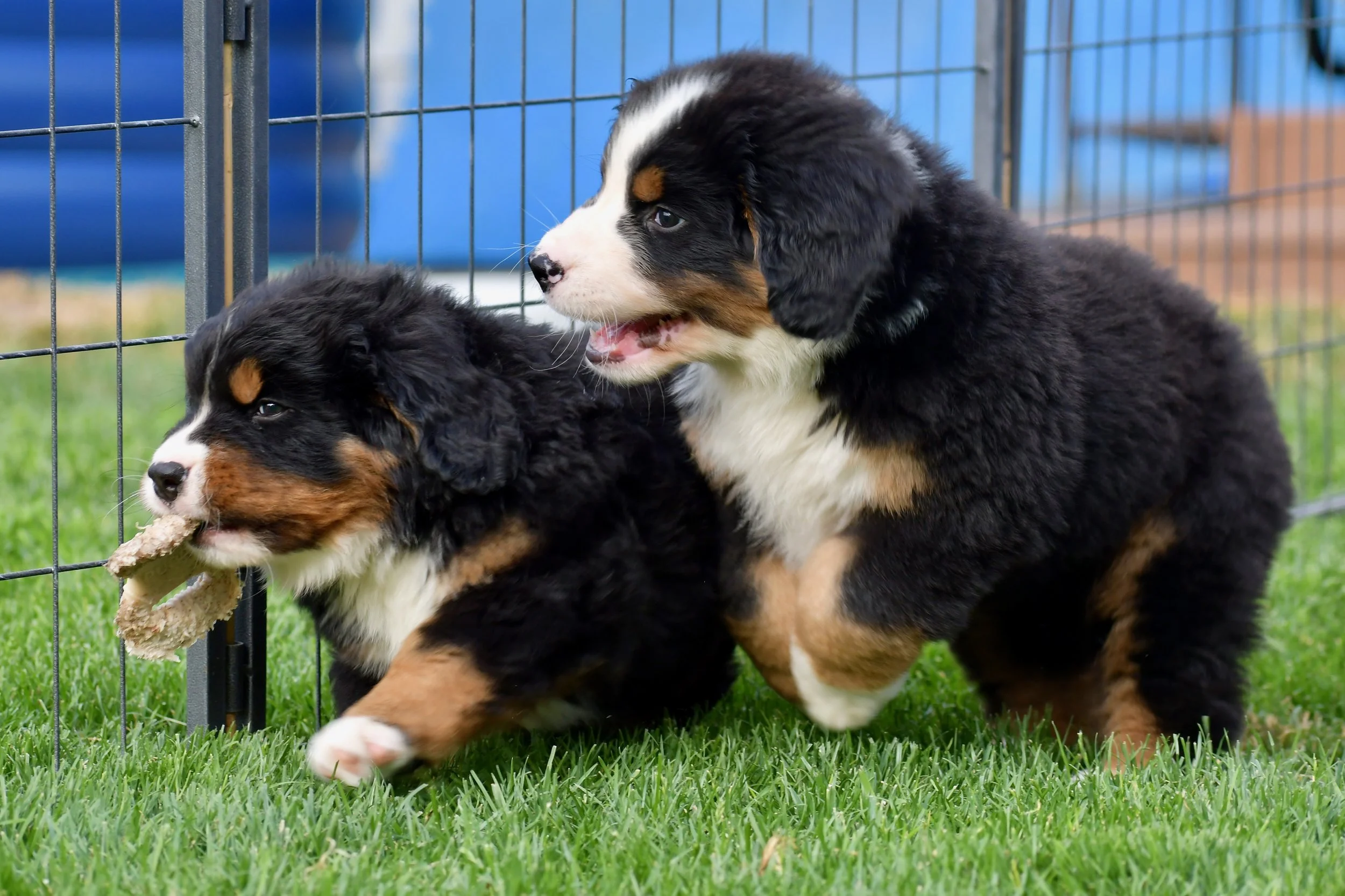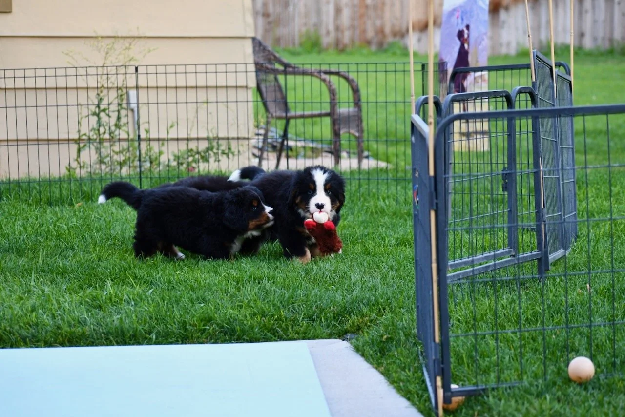 The puppies continue to display miscreant behavior. They steal, fight, trash talk each other, and escape. I pull questionable non-edibles out of their mouths all the time β rocks, sticks, grass clumps, etc. I expect them to be starting fires soon.