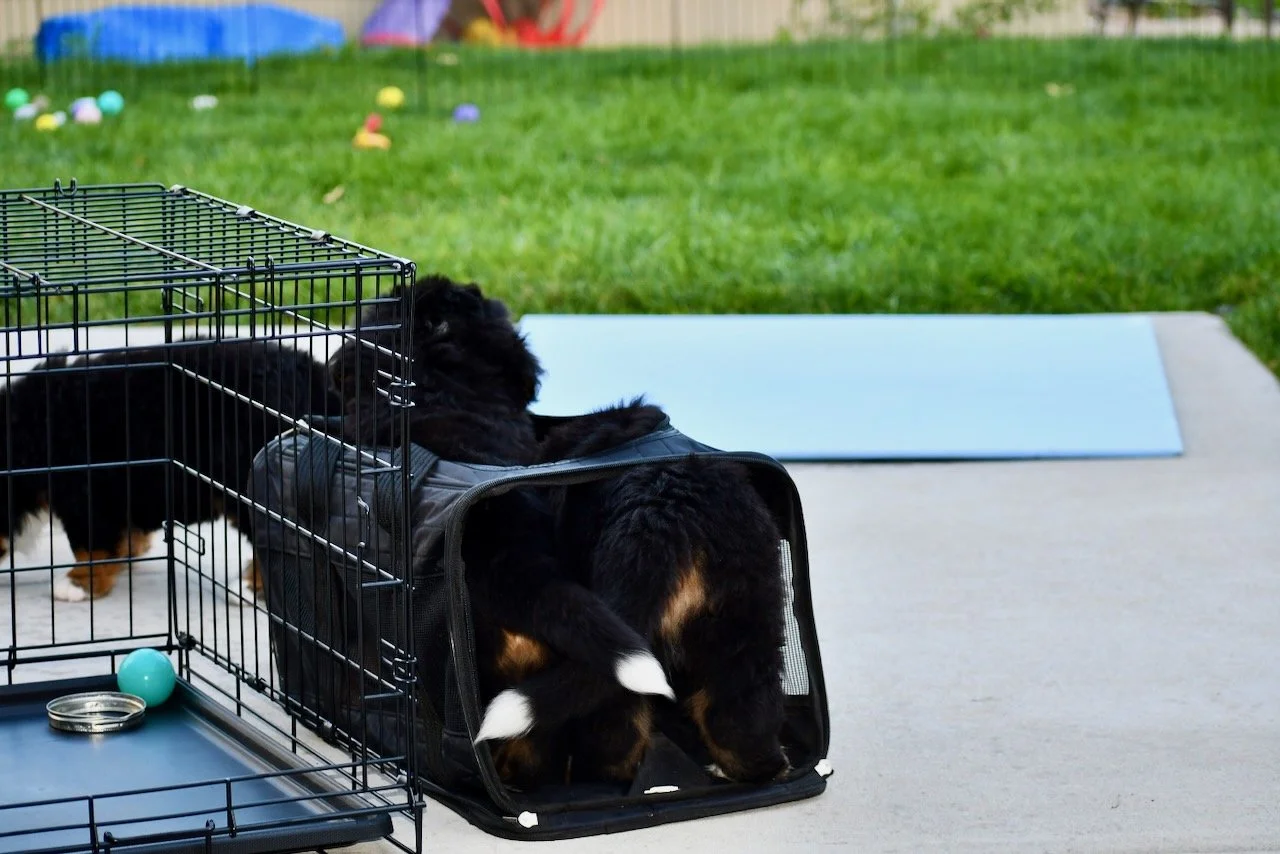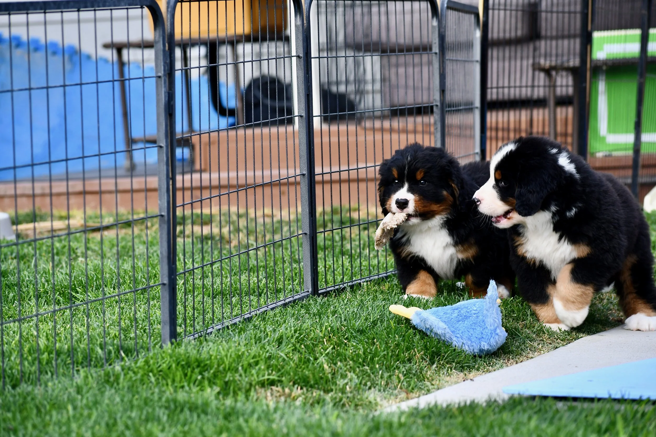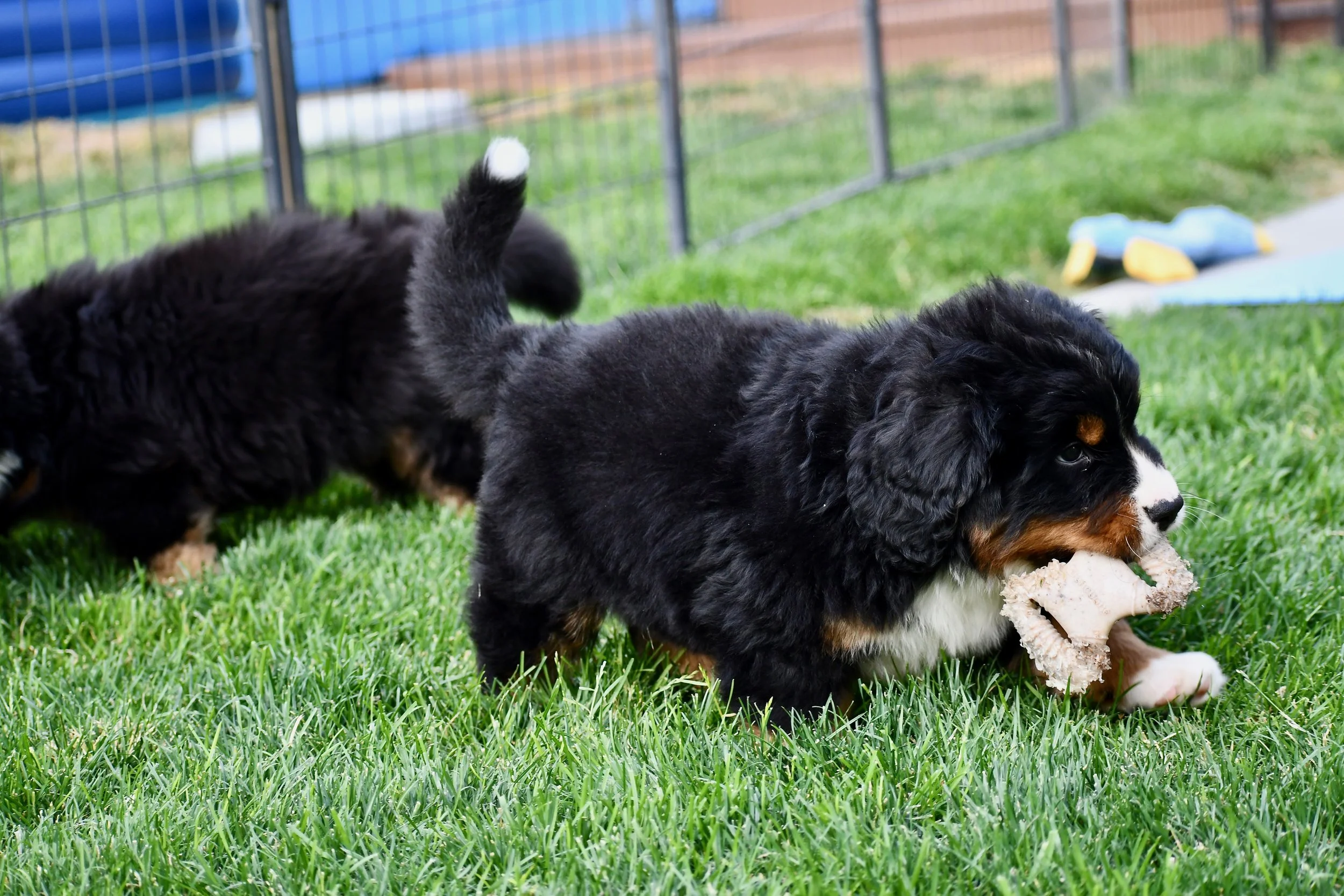 The puppies continue to display miscreant behavior. They steal, fight, trash talk each other, and escape. I pull questionable non-edibles out of their mouths all the time β rocks, sticks, grass clumps, etc. I expect them to be starting fires soon.