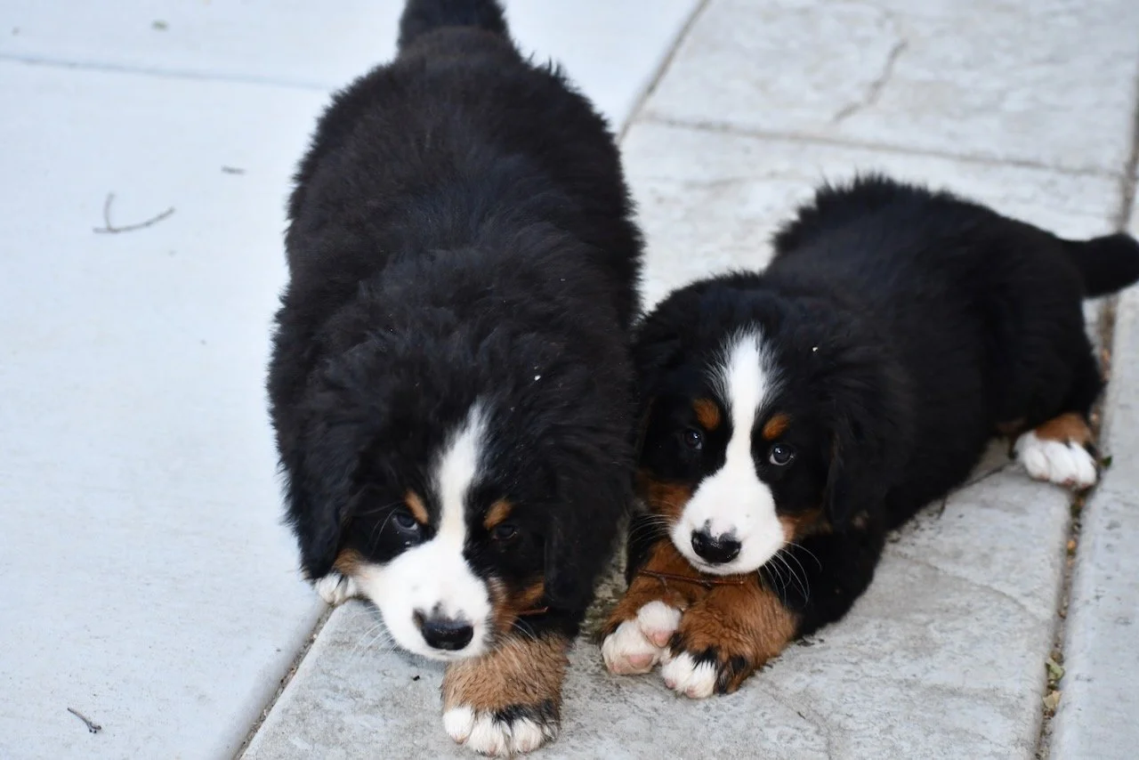 They both follow reliably, and so are ready for the next phase of leash training. This means they will get used to wearing both a collar and a harness — under supervision and with lots of treats.